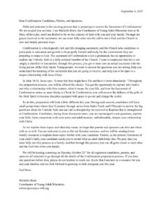 Confirmation Parent Letter & Schedule 2025-2026